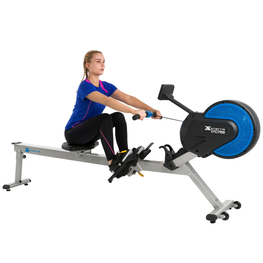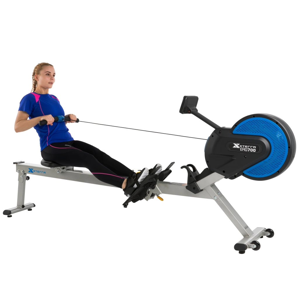 ERG700は、水上で行うボート競技の動きを再現した家庭用ローイングマシンです。